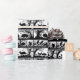 Altmodische elegante Schwarzweiss-Geschenkverpackung in einer eleganten bayerischen, deutschen Art. Basiert auf Silhouetteillustrationen von einer antiken München-Zeitschrift, von einem traditionellen Jäger oder vom Muster des DraußenMans der wilden Tiere im Wald.