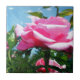 Das herrliche Rosa erhob sich am blauen Himmel. Bl Fliese