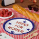 Dieses 4-Sterne-Button repräsentiert die Anzahl der Staaten, in denen Frauen zum Zeitpunkt seiner Gründung das volle Wahlrecht hatten: Wyoming (1869), Colorado (1893), Utah (1896), Idaho (1896)