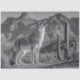 Ein einsamer Kojote hebt sich vom Kopf zum Himmel, mitten im Howl, vor einem Hintergrund zerklüfteter Wüstenberge und mächtiger saguaro cacti. Die schwarz-weiße Palette hebt die krassen Texturen von Fell, Fels und Sand hervor und erinnert an den rohen Geist des amerikanischen Südwestens.