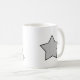 Das Design hat die Schrift und einen kleinen Stern auf der einen Seite und einen größeren Stern auf der anderen.