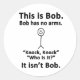 Für den Sarkasmusliebhaber in uns allen. Karo diesen witzigen "Das ist Bob. Bob hat keine Waffen. Knock Knock. Wer ist es? Es ist kein Bob." Design auf Kleidung und Geschenke.