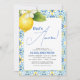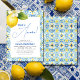 Set den Ton für eine bezaubernde Feier mit unserer That's Amore Italian Lemon Blue Tile Bridal Dusche Einladung. Mit lebendigen Zitronen, aufwändigen blauen Fliesenmustern und eleganter Typografie vereint dieses Design die Essenz italienischer Romantik und Stil. Ideal, um die Braut zu ehren, lädt es die Gäste zu einer fröhlichen Ansammlung mit Liebe und Dolce Vita-Flaschen ein. Diese wunderschön gestaltete Einladung ist ideal für ein italienisches Brautparty, das Ihren Gästen einen bleibenden Eindruck verlasst!