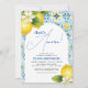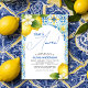 Set den Ton für eine bezaubernde Feier mit unserer That's Amore Italian Lemon Blue Tile Bridal Dusche Einladung. Mit lebendigen Zitronen, aufwändigen blauen Fliesenmustern und eleganter Typografie vereint dieses Design die Essenz italienischer Romantik und Stil. Ideal, um die Braut zu ehren, lädt es die Gäste zu einer fröhlichen Ansammlung mit Liebe und Dolce Vita-Flaschen ein. Diese wunderschön gestaltete Einladung ist ideal für ein italienisches Brautparty, das Ihren Gästen einen bleibenden Eindruck verlasst!