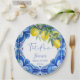 Das ist Amore Blue Maiolica Fliesen Zitronen Vintages italienisches Brautparty personalisierte monogramm gedruckte Papier Teller Vorlage, mediterranes Brautparty Zitrusfrüchte Brautparty Tischdekoration