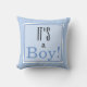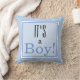 Feiern Sie die Ankunft eines kleinen Jungen mit diesem "Es ist ein Junge!" Babydusche Keepake Kissen. Dieses Design enthält den Text Es ist ein Junge in schwarz und babyblau Buchstaben.