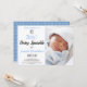 Feiern Sie mit diesem lustigen und fabelhaften "It's a Boy!" Ihre bevorstehende Kindheit! Baby Dusche Sprinkle Einladung. Ersetzen Sie das Foto durch Ihr eigenes. Passen Sie den blauen und schwarzen Schriftart und die Textfarbe mit Ihrer eigenen Wahl an oder behielt Sie diesen beliebten Stil der Typografie einfach über das Bearbeitungsmenü. Auf der Rückseite der Einladung ist ein blau-weißes Farbbandmuster dargestellt. Andere Farben und Muster sind verfügbar.
