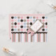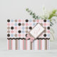 Punkte und Streifen koordinieren in einzigartigen Farben mit Rack und Poka-Dot-Bogen und Tag.