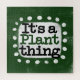 "It's A Pflanze Thing" ist ein niedliches Textdesign in grün mit schwarzem und rotem Text, zusammen mit einer weißen Akzent-Form und weißen texturierten weißen, weißen Punkten, die ihn umgeben.