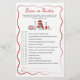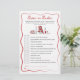 Wie gut kennen Ihre Gäste die zukünftige Braut? Diese "Over or Under?"-Brautparty-Spielkarte ist eine spielerische Möglichkeit, das Wissen der Gäste mit eigenartigen Fakten und lustigen Ratschlägen zu testen. Weiße Hintergrundbilder, romantische rote Schrift und skurrile italienische Illustrationen ergänzen das Design perfekt mit der Dusche. Die Gäste raten, ob jede Aussage vorbei ist oder unter der realen Zahl - Lacher garantiert!