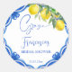 Das ist Amore Blue Maiolica Fliesen Zitronen Vintages italienisches Brautparty personalisiert monogramm gedruckte Gunst Aufkleber Vorlage, mediterranes Brautparty Zitrusfrüchte Brautparty bevorzugt