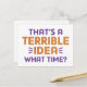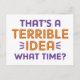 Das ist eine schreckliche Idee. Wann? Postkarte