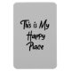 "Dies ist mein glücklicher Ort" ist eine fröhliche oder sarkastische Formulierung, um Ihre Umgebung zu beschreiben. Weißer Hintergrund. Schwarze Schrift.