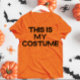 afunny orange halloween Kostümhemd mit einem einfachen typografischen Text in schwarz.