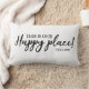 Kissen im Bauernstil mit dem individuellen Drehbuch "Dies ist unser glücklicher Ort" in handgeschriebenem und dekorativem Schriftart mit einem Jahr, das Sie personalisieren können.