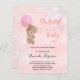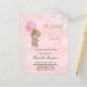 Für eine Babydusche, die ein Babymädchen feiert. Ein rosa Imitat metallisch aussehend Hintergrund, mit Imitaten silberner Glitzer Staub. Ein Teddybär, der einen rosa Ballon hält. Personalisieren und fügen Sie den Namen der Mutter zu sein und Party-Details. Oh Baby! und Bearly sind mit einem handgeschriebenen Stift geschrieben.