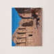 Ein Esel überblickt das wunderschön geschnitzte Kloster in Petra, Jordanien. Dieses Rätsel ist vollständig anpassbar.