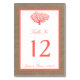 Das Korallenriff auf der Burlap Boho Beach Wedding Tischnummer