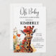 Das Bild zeigt eine niedliche Giraffe mit spielerischem Ausdruck, umgeben von einer eleganten Anordnung farbenfroher Blume. Der lange Hals der Giraffe reicht anmutig in Richtung der Blüten und schafft eine zauberhafte und ruhige Szene, die die Schönheit der Natur und die sanfte Präsenz des Tieres zeigt.