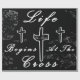 Eine wunderbare Gottesbotschaft mit einer Silhouette von drei Kreuzen, um die Christen daran zu erinnern, dass das ewige Leben am Kreuz Christi beginnt.