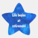 "Das Leben beginnt bei der Pensionierung" sternförmige Aufkleber. MY ORIGINAL ARTWORK unter Zazzle.com/virginia5050 und RetirementGiftStore unter www.zazzle.com/RetirementGiftStore. http://www.zazzle.com/i_love_rock_n_roll_postage-172730376948638463