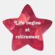 "Das Leben beginnt bei der Pensionierung" sternförmige rote Aufkleber. MY ORIGINAL ARTWORK unter Zazzle.com/virginia5050 und RetirementGiftStore unter www.zazzle.com/RetirementGiftStore. http://www.zazzle.com/i_love_rock_n_roll_postage-172730376948638463