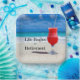 Das Leben fängt bei der Pension an, frostiges Getränk am Strand, beliebtes farbenfrohes Design.