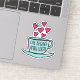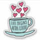 Denkt man nicht mal darüber nach, sich vor dem ersten Coppa-Joe zu unterhalten? Dieser lustige Aufkleber für Kaffeeliebhaber enthält das Zitat "Das Leben beginnt nach dem Kaffee" auf einer winzigen grünen Kaffeetasse mit rosa Dampfherzen.