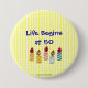 "Das Leben beginnt um 50" Button der farbenfrohen