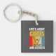 Hockey Thema Schlüsselanhänger mit Hockey-Puck und Sticks mit bunten Streifen und Text, dass Life's About Goals and Assists!