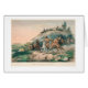 Die Bancroft Bibliotheks-Geschenke: Die Bancroft Bibliotheks-Geschenke: Dieses ist ein wild-mit Augen Bison aufladeninder zu Pferd, da er Stange in Tier taucht. Toter und sterbender Bison und Schädel umgeben Hauptszene; umfangreiche Herden im Abstand. Durch Albert Bierstadt circa 1891.