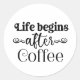 Das Leben beginnt nach dem Coffee Funny Quote Coffee Lovers Classic Round Sticker Schau deine Liebe Kaffee mit diesen niedlichen Aufklebern ab!