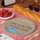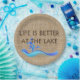 ' Das Leben ist am Lake Text auf Leinwandbild Papier-Teller mit einem playful Bild des Wasserspritzens besser.