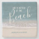 Dieser personalisierte Strand-Hütten-Stein-Untersetzer ist ein schöner Akzent zu jedem möglichem Strand- oder See-Zuhause. Ein serene Foto des Türkiswassers und des weißen Sandes ist der Hintergrund. Weißer Kalligraphiearttext, auf das Foto, liest: Das Leben ist am Strand-"Namen-" Strand-Haus besser.