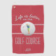 Niedliches Golftuch mit "Das Leben ist besser auf dem GOLF-KURS!" Zitat in schattiger Typografie-Design auf einem stilvollen, roten Hintergrund weißen Trimm. Im Mittelpunkt des Designs steht ein realistisches Golfballbild mit einer polygonalen Silhouette, die den Golfer zum Handeln bewegt. Die Hintergrundfarbe und die Schriftart können in der phantastischen Werkzeugleiste von Zazzle geändert werden, wo Sie einfach eine Anpassung mit Namen oder Initialen vornehmen können.