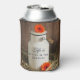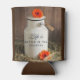 Eine Dose kühler, die sagt: Das Leben ist besser im Land. Entworfen mit einem rustikalen Thema. Ein Foto von einem Weißmilchkrug und ein paar orangefarbene Blume, die um die Milchdose gelegt werden. Sitzen in einer Scheune auf etwas Heu. Holzpaneele im Hintergrund. Ideal für die Hütte.