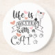 Das Leben ist besser mit einem Cat-Anführungsmotto Getränkeuntersetzer