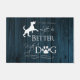 Das Leben ist besser mit einer Dog Matte ist perfekt für diejenigen, die das Leben viel besser mit einem Hund darin finden. Das Design der Türmatte enthält den Text "Das Leben ist besser mit einem Hund." mit einem Pfotenprint und einer Silhouette mit Hund vor einem rustikalen, tiefblauen Holzhintergrund. Auch zusätzliche Geschenkartikel sind in diesem Design erhältlich.