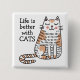 Niedliche lustige Doodle einer Katze, die mit geschlossenen Augen aufsitzt, rosa Wangen und bräunliche Flecken. Für sie links sind die Worte, das Leben ist besser mit Katzen in einem lustigen schwarzen Schriftart.