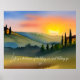Schönes inspirierend Zitat über die Aquarelllandschaft, die die sanften Hügel der Toskana bei Sunset darstellt. Rumi zitiert: "Das Leben ist eine Balance, auf der es bleibt und lasse."