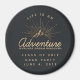 Abschluss Save the Date memento mit einer goldfarbenen Abbildung auf einem schwarz-grauen Hintergrund. Entworfen mit einer Abbildung eines Berges, in dem die Sonnenstrahlen von hinten leuchten. Typografie sagt: Das Leben ist ein Erlebniserlebnis Traumwelt entdecken.