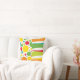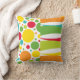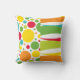 Das amerikanische MOJO-Kissen mit Life ist ein Party-Design, eine Mischung aus hellen Farbpolka-Punkten, Blume und Wirblen Streifen auf weißem Hintergrund.