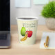 Ja! Diese coolen Papiertassen zeigen ein digitales Bild von Leslie Sigal Javorek, das im Retro-Stil gehalten ist. Ein Trio aus fruchtigem "Aufkleber"-Set gegen ein Vinyl-Tablett aus der Ei-Muschel und die Beschriftung "All Life is a Picnic to be Enjoyed!"