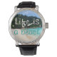 Uhr, Klassische Damenuhr mit schwarzen Lederarmband