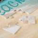 Ein schöner weißer Sandstrand, umgeben von Bäumen. Von den Designern des FOMA-Designs für Sie zusammengestellt