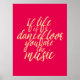 Ein cooles Kalligraphieposter mit inspirierendem Zitat über Leben, Liebe und Musik. Wenn das Leben eine Tanzfläche ist, sind Sie die Musik. Eine großartige Dekoration für Ihr Zimmer. Ideal für Musikliebhaber und Liebhaber von Songs und Texten. Die Hintergrundfarbe kann angepasst werden.