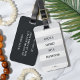 Unser modernes gestreiftes Gepäckschild zeigt das Zitat "Leben ist eine Reise, kein Ziel" in fett schwarzen Schriftzeichen vor grauem und weißem gestreiften Hintergrund. Personalisieren Sie Ihre Daten mit einem Namen oder Monogramm, falls gewünscht, mit dem angegebenen Feld, und fügen Sie Ihre vollständigen Kontaktdaten zur Rückseite hinzu.