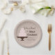 Slogan "Das Leben ist kurz, also essen Kuchen, viel und viel Kuchen" mit 3 Tier rosa mattierten Kuchen auf Herz Hintergrund. Papier Party Teller.