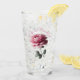 Im Stil unseres Lebens ist ein wunderschönes Glas, das elegante Typografie und eine zarte rosa Rose zeigt - perfekt, um jedem Drink einen besonderen Charme zu verleihen.