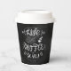 Dieser heiße Getränkebecher ist mit einer koketten Handschrift versehen, die auf schwarzem Hintergrund "Leben ohne Kaffee ist Beängstigend" steht. Die Schrift enthält dekorative Wimpern und dekorative Wirbel.